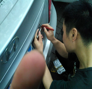 汽车锁的锁芯是多用锌合金制作,它的锁芯比一般普通锁的锁芯要大,也是圆柱体形。锁身套装上锁芯后,弹片中央的方形洞孔则形成钥匙孔。就是说原装钥匙是插入弹片中央进行扭动来开锁的。锁面壳是不锈钢片,(我们可以从锁眼的外观上看得出是什么类型的汽车锁,一般锁眼较窄的是双面牙花的锁,如是锁眼较宽的多是内外铣槽的锁)也可以架好Y档后用带灯别子,电筒,能够照亮锁芯来观看锁眼里面的片子来确定是什么类型的汽车锁。